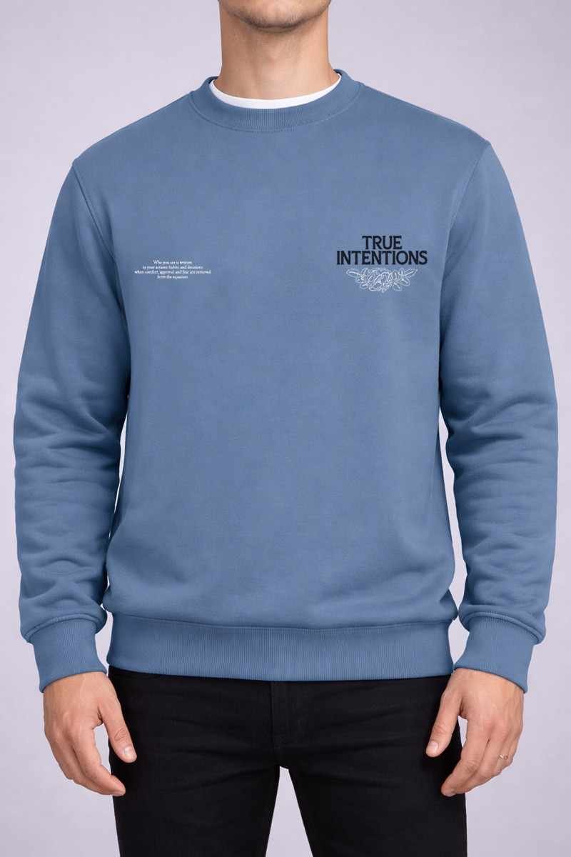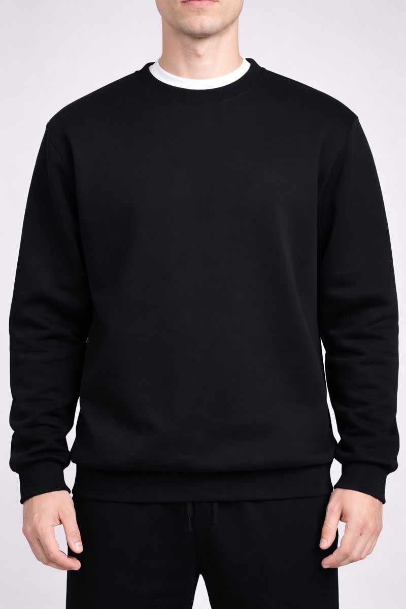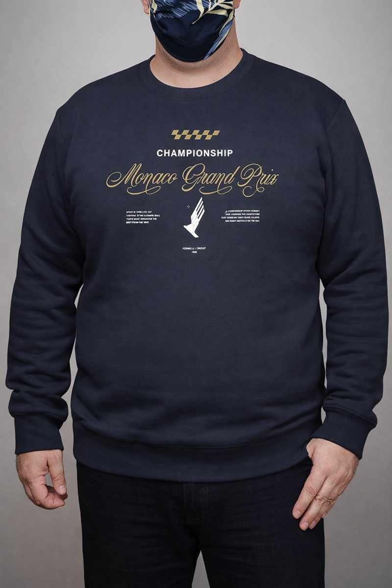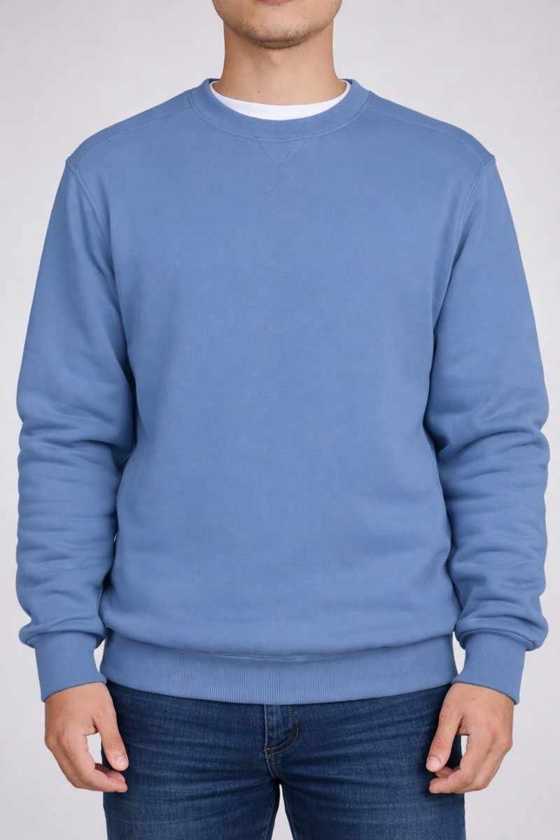 Buzo cuello redondo con bordador y recortes laterales en frisa unicolor. Talle especial.