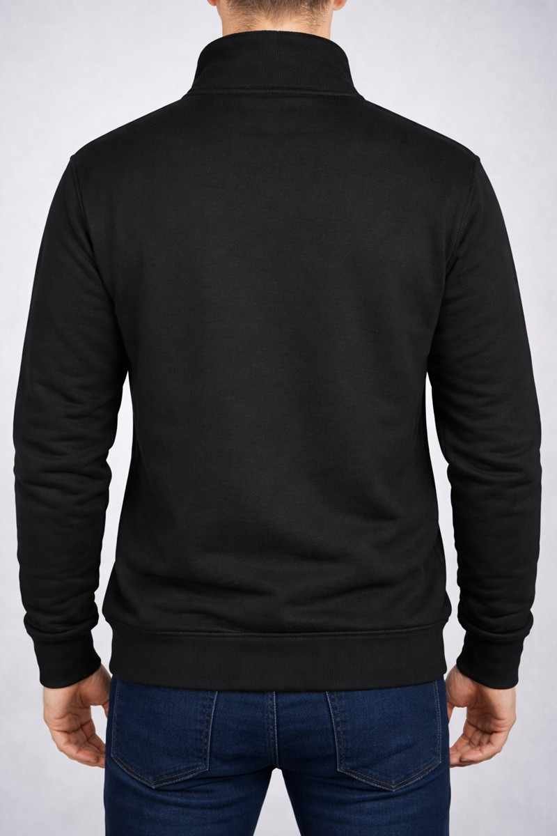 Buzo cuello medio con cierre en punto roma.